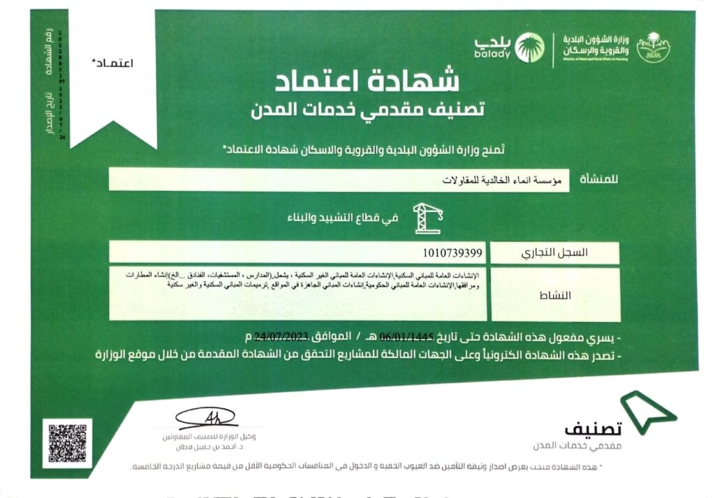 تقدم إنماء الخالدية خدمات متكاملة في مجال البناء والتشييد منذ عام 2012 وفق أعلى معايير الجودة، وتشمل: